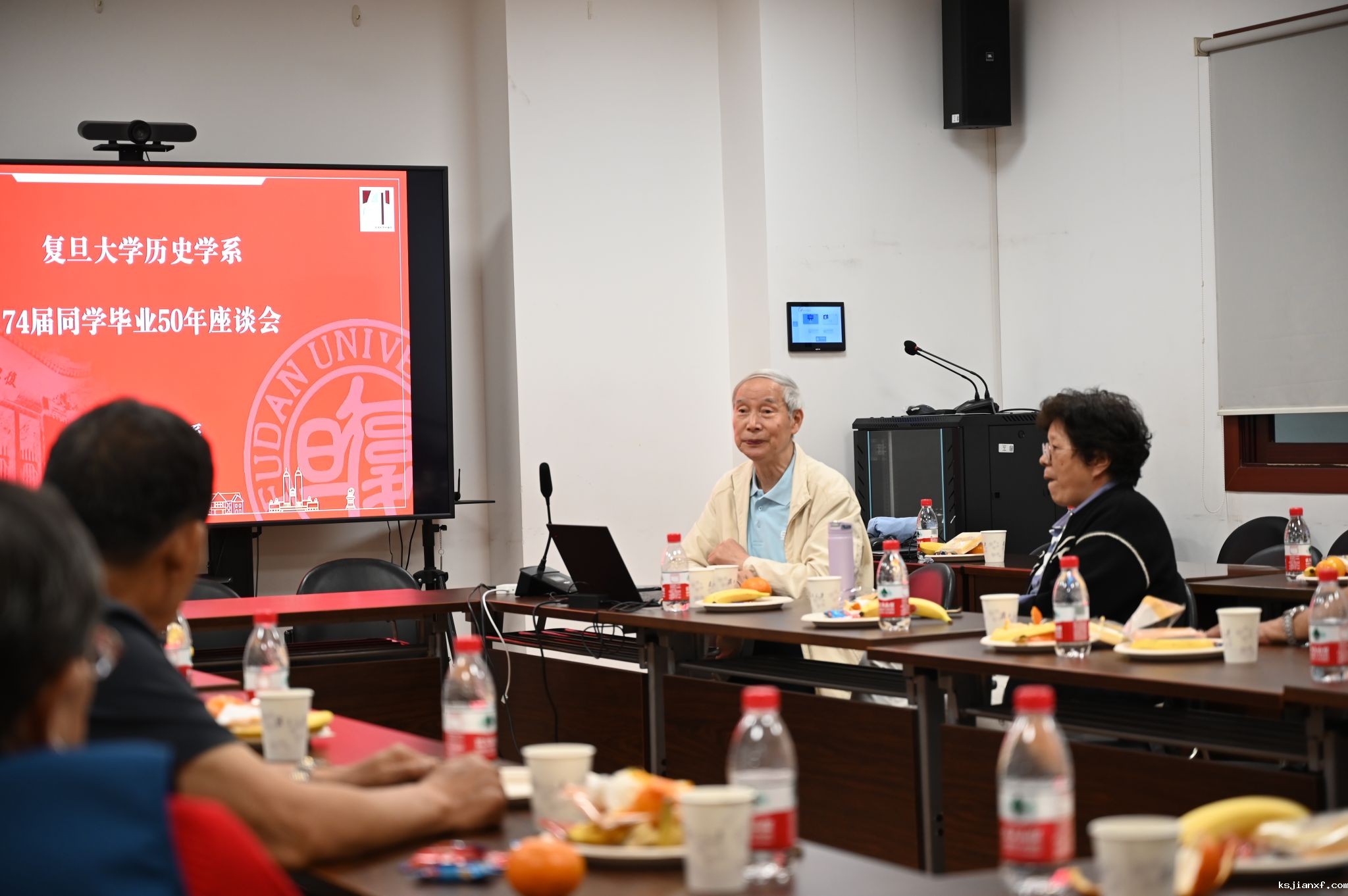 1974届历史学系校友在西主楼2801会议室开展了毕业50周年纪念活动,15名校友齐聚一堂,观看毕业纪念片,聆听当年辅导员寄语,同时,开展为期3天的参访、市内考察和聚餐活动等。